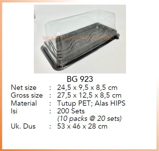 Net size : 24,5 x 9,5 x 8,5 cm Gross size : 27,5 x 12,5 x 8,5 cm Material : Tutup PET; Alas HIPS Isi : 200 sets (10 packs @ 20 sets) Uk. Dus : 53 x 46 x 28 cm