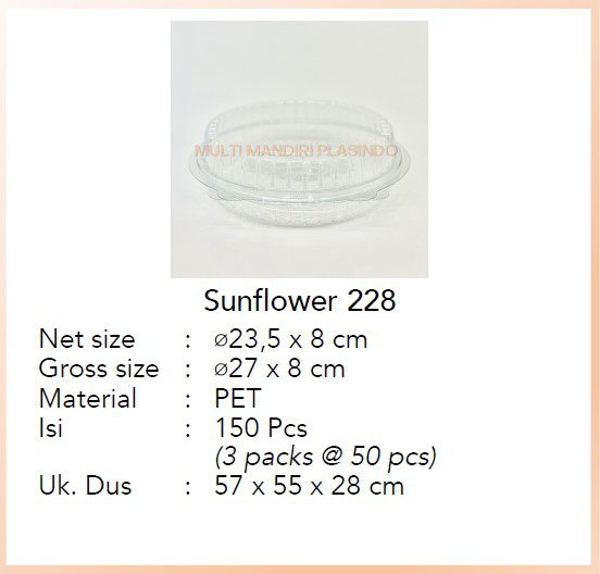 Net size : Ø23,5 x 8 cm Gross size : Ø27 x 8 cm Material : PET Isi : 150 pcs (3 packs @50 pcs) Uk. Dus : 57 x 55 x 28 cm